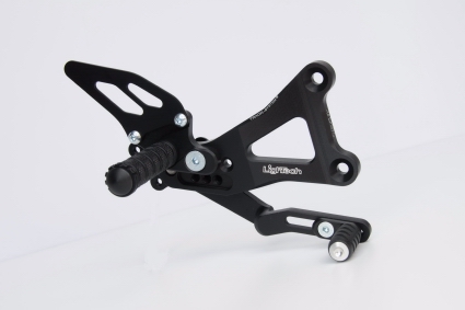 Le pedane pilota realizzate dalla Lightech per la S1000RR, in colore nero, sono completamente regolabili, permettono di montare il cambio rovesciato e sono in ergal 7075, a tutto vantaggio della leggerezza, la viteria in ergal è disponibile per carena/motore/telaio, vari anche gli specchietti disponibili, da quelli con rivestimento in carbonio puro fino a quelli con fibra colorata.
