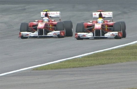 Seguendo il loro “uno-due” e controverso risultato al Gran Premio di Germania, la Ferrari è stata multata US $ 100.000 dalla FIA dopo che i commissari di gara avevano ritenuto violato il regolamento sportivo. Il caso è stato deferito alla World Motor Sport Council (WMSC). Il pilota della Ferrari Felipe Massa, che era stato in testa alla gara di Hockenheim, si è fatto da parte per consentire al compagno di squadra Fernando Alonso, di passarlo, il tutto durante lo svolgimento del 49 ° giro. Pochi istanti prima, via radio, Felipe Massa, aveva ricevuto un messaggio dall’ ingegnere, Rob Smedley il quale aveva detto al brasiliano: “Fernando è più veloce di te. Puoi confermare che ha capito il mio messaggio ?”