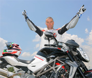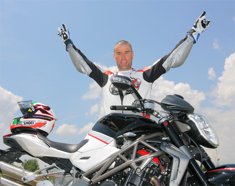 Ha seguito ogni consiglio dell’amico Roberto Locatelli con scrupolo e ammirazione. “Quando hai tanti cavalli sotto al sedere, come quelli della BRUTALE 1090RR, e un telaio che ti permette di portarli al limite, non puoi pensare di imparare da solo. I consigli preziosi di gente come Locatelli consentono di controllare la moto, di avvicinare il limite senza rischiare di farsi male. Io sono anche soccorritore alpino, conosco l’importanza delle regole e della sicurezza. Troppe volte capita di