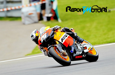 Ci crede lo spagnolo del team Repsol Honda, che sfrutta le cadute di entrambi i piloti Fiat Yamaha nel finale e fa segnare il miglior tempo di tutto il fine settimana. In prima fila anche Spies e Lorenzo. Sfida di millesimi tra Dani Pedrosa e Jorge Lorenzo per la pole position del cardion ab Grand Prix Ceské Republiky.