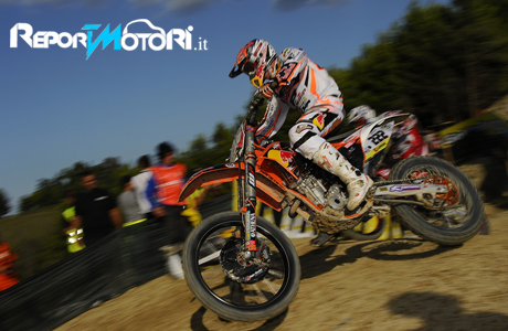 Parlando del GP d’Italia , Antonio Carioli in sella alla KTM 350cc ATHENA ha ottenuto oggi la quarta posizione in griglia di partenza, al termine della gara di qualifica vinta da David Philippaerts. Cairoli è scattato al cancello davanti a tutti, ma nel rettilineo di partenza è stato superato da Philippaerts che è fuggito, inseguito dal francese Aubin. Alla quarta tornata Aubin è riuscito brevemente a scavalcarlo dopo un duello mozzafiato. Dietro Cairoli si è dovuto accontentare della quarta posizione, rallentato da alcu ni doppiati. « IL circuito è bello come sviluppo e il moto club ha fatto un gran lavoro per allestirlo, ma un po’ troppo vecchio stile, ha detto il siciliano, il fondo duro non permette ai giovani di imparare a guidare la moto da cross in chiave moderna. Detto questo , oggi ho preso una bella partenza, ma purtroppo sono stato rallentato dai troppi doppiati che non lasciavano strada. Il questo posto comunque va bene, domani correrò per vincere. Non sarà una gara facile poiché i piloti che mi seguono in classifica stanno lottando per le posizioni finali e daranno il massimo».