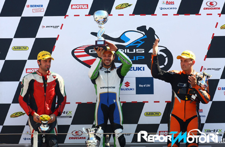 Il numero 73, però, non riesce a tenere il passo di Segoni e Marangon che dopo poche tornate cominciano a fare sul serio e riescono a scrollarsi di dosso il terzo incomodo. La gara si accende a pochi giri dalla fine con il toscano che studia il piemontese e gli lascia la testa della corsa. La bagarre si risolve al fotofinish, come spesso accaduto in questa stagione: Lorenzo sfrutta tutta la sua leggerezza e la scia presa in uscita di curva e va a vincere con cinque centesimi di vantaggio su Marangon. Il pilota piemontese dovrà rimandare all’ultima tappa di Misano l’appuntamento con la vittoria dopo ben cinque secondi posti. A completare il podio, Valentini che ha meritato ampiamente il terzo posto precedendo Donati e Trimarco che chiudono la top 5. Tavella, Broglia, Natali, Tuttolomondo e Miraglia, invece, completano l’ordine di arrivo.
