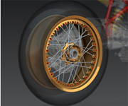 Il cerchio Kineo in lega 7000 forgiato e finito alla macchine CNC, sviluppato sulla base di un innovativo profilo asimmetrico che ha permesso di spostare su un lato i punti di ancoraggio dei nippli, il nuovo mozzo Kineo bello quanto leggero e compatto,i 32 raggi inox con i nippli in lega colorati, conferiscono alla ruota Kineo 600×17 un look unico e di grande impatto nel campo delle ruote a raggi per moto di grossa cilindrata.
