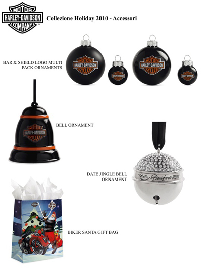 Nel catalogo Holiday 2010 trovano inoltre spazio decorazioni natalizie ispirate al mondo Harley- Davidson, idee per la casa o per un regalo originale.