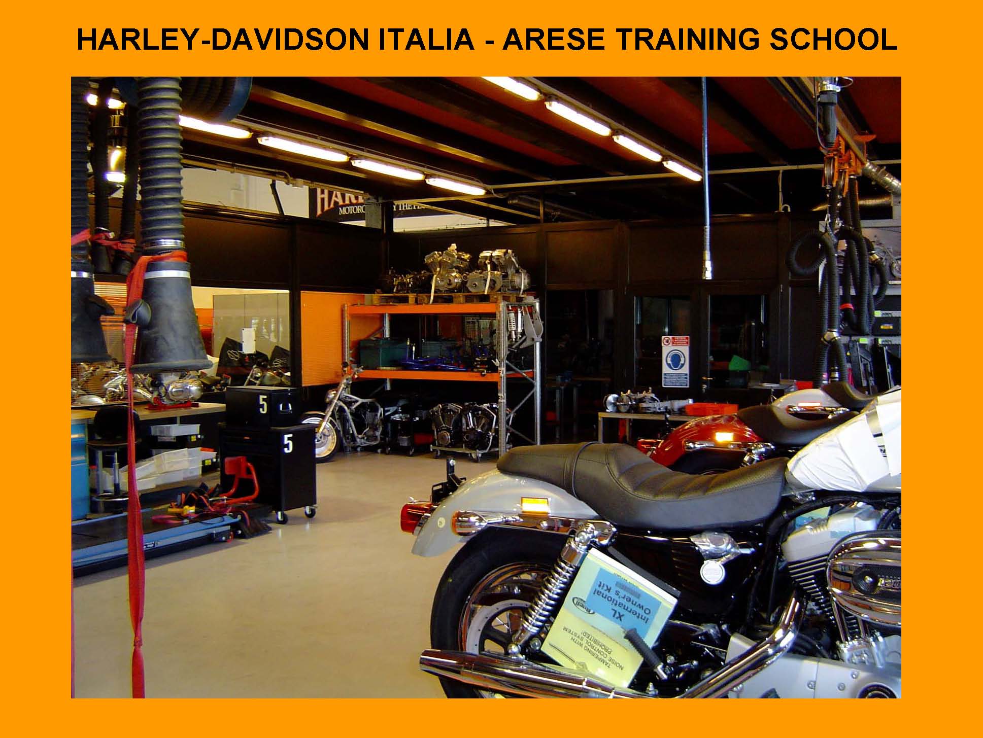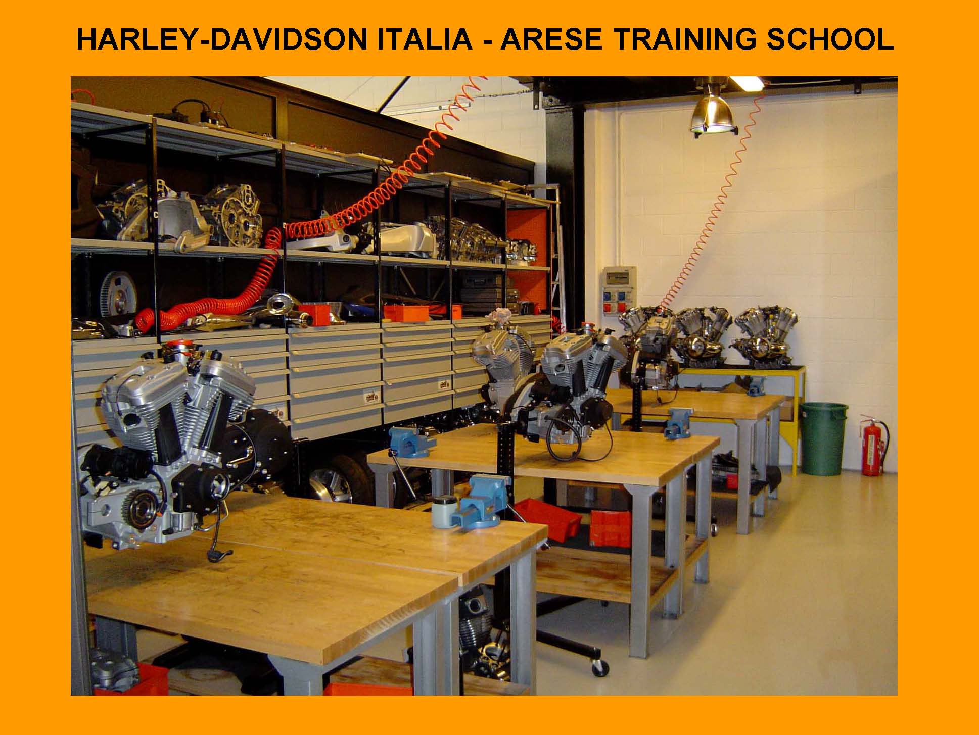 I corsi di formazione hanno come sede principale Arese, presso Harley-Davidson Italia, dove è stata allestita una Training School dedicata, con aula teorica e un’officina per la pratica dotata di banchi prova, motori e attrezzature specifiche. Altri sono istituiti presso location esterne per facilitare i concessionari più lontani. Grazie all’era digitale molti programmi sono anche organizzati