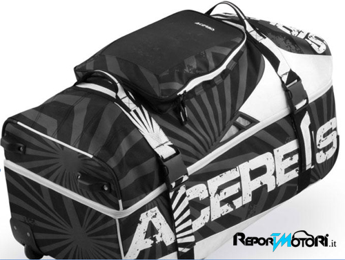 La nuova linea da viaggio Acerbis presenta una collezione completamente rivisitata, sia in termini di design ma soprattutto di tecnicità. La nuova borsa Aster offre una capacità pari a 105 litri, tasca superiore semirigida per maggiore protezione degli oggetti. Dotata di tre maniglie per movimentazione della borsa, una delle quali estendibile su 3 livelli. Chiusura con zip centrale e cinghie superiori munite di fibbie a sgancio ed aggancio rapido. Barra in plastica di irrigidimento sul fondo. Finestrelle di areazione. Tripli scomparti interni per casco, stivali ed abbigliamento. Fornito di rotelle per movimentare la borsa con facilità.