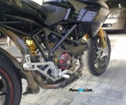 La lunga lista delle modifiche è realmente ricca di accessori particolari: le pedane passeggero e pilota realizzate dalla Style & Performance, l’impianto frenante con pinze monoblocco radiali provenienti da una Ducati 1098 con dischi da 330 ed i cerchi Marchesini in alluminio forgiato sono solo alcuni dei componenti installati sulla Multistrada di Silvestro Porcaro.