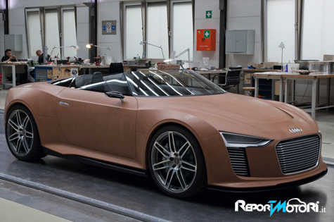 In questa prima fase indagatoria, i designer lavorano su due diversi progetti, per rendere più facile comparare i risultati e prendere le necessarie decisioni. Il disegnatore Audi Frank Lamberty usa strisce di nastro adesivo nero per disegnare linee perfette. Indietreggia in continuazione, per osservare il suo lavoro da un altro punto di vista e arrivare a un risultato comparabile alla produzione di serie: anche le show car, infatti, devono essere Audi sotto tutti i punti di vista. Se gli si chiede di ripercorrere le fasi di definizione del design della e-tron Spyder, Lamberty racconta: “Continuavamo a rimbalzare come palline da ping-pong tra l’eleganza delle imbarcazioni veloci e il modo radicale di intendere la velocità proprio delle moto nude e della roadster degli Anni ’60 e ’70. La Audi e-tron Spyder nasce da questa convergenza carica di suggestioni”.
