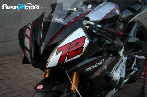 All’altezza della realizzazione grafica è il reparto sospensioni: come di consueto su ogni moto supersportiva, le forcelle ed il mono di serie sono stati sostituiti da componenti aftermaket. In questo caso la scelta è caduta sulle Ohlins: cartucce forcella complete e mono posteriore TTX completano una ciclistica rigorosa degna del campionato supersport.