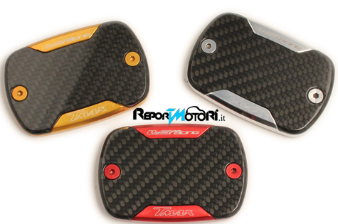 E’ il perfetto accoppiamento tra una lamina di fibra di carbonio strutturale finemente lavorata e lucidata con un supporto in Al7075 ergal anodizzato e lavorato dal pieno a dare vita alle elegantissime cover serbatoio per fluido freni e frizione specifiche per T-Max.