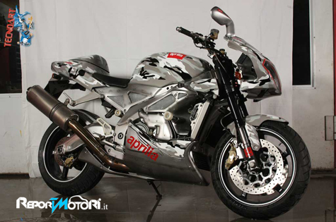 E’ il caso di Attilio Bocchiola, che un bel giorno ha deciso di affidare alle cure della Tecnoart Sersan la sua Aprilia RSV, già precendentemente trasformata in una Tuono, per dare vita ad una moto nuda ed unica, dal carattere estetico forte, originale e. . . mimetico!