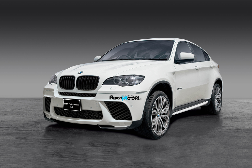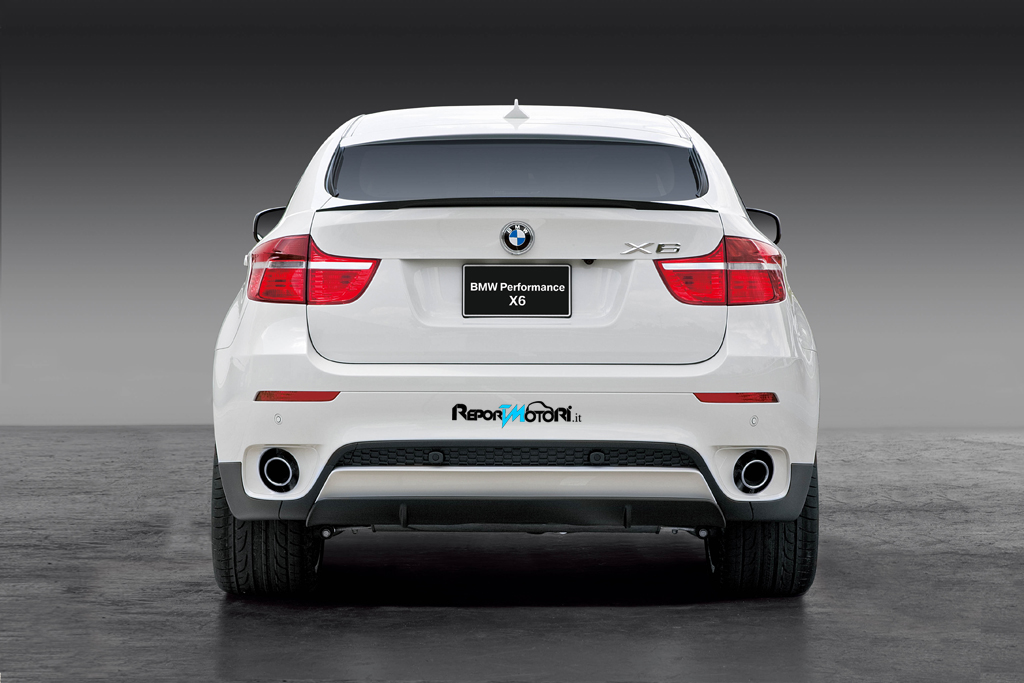 Qualora desiderato, il kit aerodinamico BMW Performance della BMW X6 è completabile con uno spoiler posteriore, dei fin posteriori colore nero pastello e con una griglia anteriore verniciata in nero lucido.