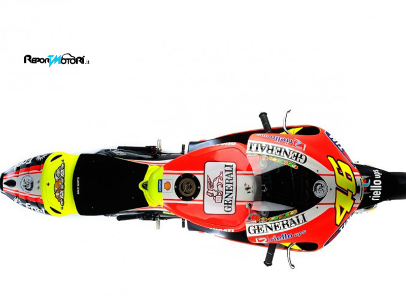 Osserviamole bene! Siamo sicuri che la Ducati Desmosedici di Valentino Rossi sia identica in tutto e per tutto a quella di Nicky Hayden? E’ il dubbio che alla Redazione di ReportMotori.it è venuto osservando le due moto, troppo perfette ed identiche per esser uguali! Un controsenso? Assolutamente no!