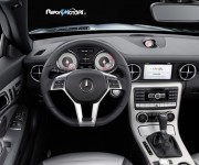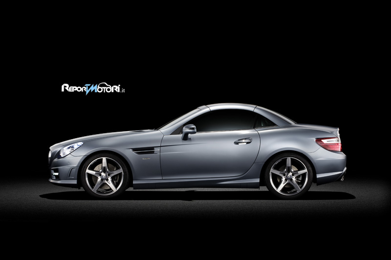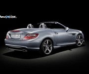 La Mercedes SLK ha svelato finalmente il velo sulla sua nuova Roadster: linee tese, alta tecnologia ed un family feeling che richiama quello della nuova generazione di auto della casa automobilistica tedesca. Il frontale della nuova SLK è imponente, la grande stella a tre punte sovrasta la larga presa d’aria frontale, mentre osservando il profilo è chiara l’idea di voler giocare su contrasti di linee e luci per dar vita ad una linea ancora più sinuosa. Il retro è caratterizzato dalle luci a led e da un accenno di spoiler. Bello il doppio scarico separato (probabilmente presente solo sulle versioni di punta).