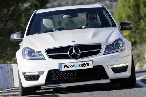 La generazione 2011 di C 63 AMG è più dinamica ed atletica che mai. Nuova calandra, nuovo spoiler frontale AMG, luci diurne a LED specifiche e prese d’aria laterali: il design frontale ricorda il Roadster ad alte prestazioni SL 63 AMG. Il nuovo cofano motore, con powerdome, è in alluminio. A caratterizzare l’incisiva immagine del modello contribuiscono, inoltre, i nuovi proiettori in vetro trasparente, dotati di funzione Intelligent Light System (ILS) di serie. Il profilo è caratterizzato dagli ampi parafanghi con badge “6.3 AMG” e dai nuovi cerchi in lega AMG a 5 doppie razze in grigio titanio, con finitura a specchio. La massima dinamica di guida è garantita anche dagli pneumatici sportivi da 235/40 R 18 all’anteriore e da 255/35 R 18 al posteriore.