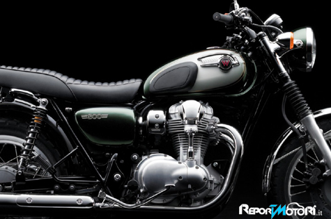 Le ruote di grande diametro e il design compatto della moto creano un prodotto bilanciato dalle proporzioni classiche. Il serbatoio dalle linee arrotondate, verniciato con cura, contribuisce a conferire alla W800 un’aura di