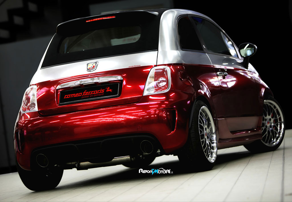 La Romeo Ferraris ha scelto la 500C Abarth da 140 cavalli come base di partenza per unʼedizione speciale che colpisse immediatamente al primo sguardo. Per la prima volta in Italia la Factory milanese ha così realizzato una verniciatura bicolore completamente cromata, che cattura lʼattenzione con i suoi riflessi unici ma non abbaglia alla luce del sole, in quanto la percentuale di cromatura non supera il 60%.