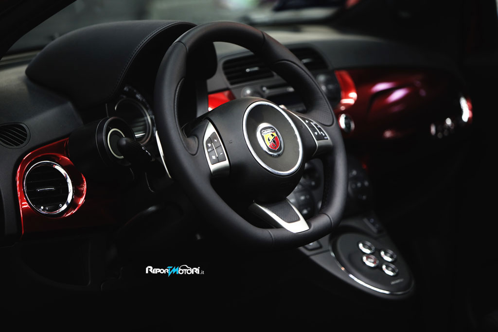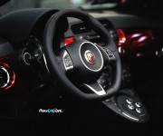 Gli interventi nellʼabitacolo sono stati studiati dallʼAtelier della Romeo Ferraris con il preciso intento di rispecchiare la sportività del marchio dello Scorpione senza tradire lʼeleganza e la ricercatezza che si addicono a una cabrio. Ecco perchè i sedili sportivi Abarth sono stati rivestiti in pelle primo fiore nera con una particolare cucitura a rombi della