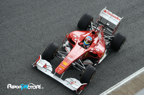 Fernando Alonso ha iniziato a girare con la Ferrari F150th Italia alle nove e la prima parte del lavoro in pista è stata dedicata ad una serie di misurazioni aerodinamiche mentre, una volta asciugatosi l’asfalto, si è iniziato il lavoro di valutazione delle gomme, anche in quest’occasione la priorità numero uno del programma del test. Prima della pausa pranzo, qui fissata dal circuito dalle 13 alle 14, il pilota spagnolo aveva percorso 37 giri, ottenendo il miglior tempo assoluto con 1.25.485.