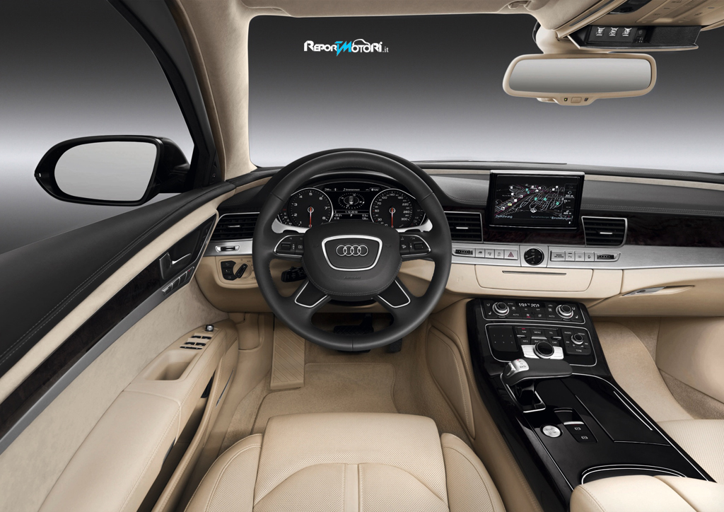 L’abitacolo della A8 L Security è caratterizzato da linee delicate ed eleganti e per la sapiente e accuratissima lavorazione dei materiali. Il comfort a bordo è eccellente. Fanno parte delle dotazioni di serie il climatizzatore automatico a quattro zone con ionizzatore (per mantenere sempre fresca l’aria dell’abitacolo), le tendine elettriche per i finestrini posteriori, il raffinatissimo sistema Bose Surround Sound e il sintonizzatore TV. I due posti singoli disposti nel divano posteriore sono dotati di regolazione elettrica. I sedili anteriori comfort, anch’essi regolabili secondo molteplici parametri, sono riscaldabili e, a richiesta, dotati di funzione di massaggio e ventilazione. La A8 L W12 Security è dotata inoltre di un pacchetto pelle completo.