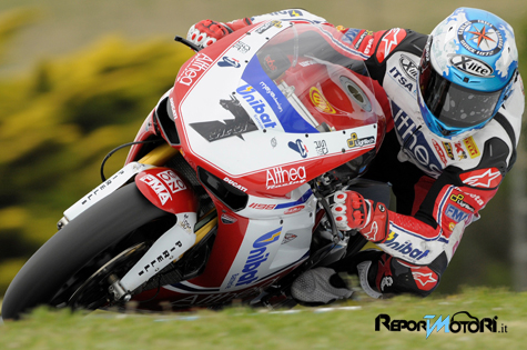 Piu’ tardi nelle prime qualifiche, Carlos ha consolidato la performance della prima sessione, posizionandosi in prima posizione già dopo circa venti minuti. E’ rimasto in cima alla classifica fino al termine del turno, riuscendo ad abbassare di qualche decimo il suo tempo, per poi chiudere con un giro ancora migliore in 1’31.5. Il suo rivale piu’ vicino oggi pomeriggio e’ stato Guintoli, anche lui su Ducati, che ha chiuso secondo, staccato di tre decimi dall’alfiere del team Althea. Pur soddisfatto per i risultati odierni, il team Althea Racing spera di poter migliorarsi ulteriormente, soprattutto in previsione della Superpole di domani.