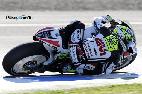 Jerez, 01 Aprile: i piloti della classe regina sono tornati in pista oggi per il primo round Europeo della stagione a Jerez de la Frontera: il popolarissimo circuito del Sud della Spagna. Il pilota del Team LCR Honda MotoGP Toni Elias ritorna sul tracciato dove lo scorso anno ha vinto iniziando la sua corsa alla conquista del titolo della Moto2. Cielo sereno e temperature di circa 28° hanno accolto i piloti della 800cc per le due sessioni di prove libere ma il pilota Iberico fatica ancora in sella alla sua RC212V.