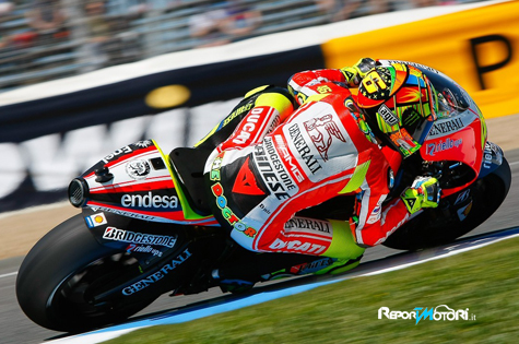 “Sono contento perché questa mattina ho fatto segnare il 3º tempo più veloce. Nel pomeriggio, colpevole anche una temperatura decisamente più alta, sono scivolato 5º. Ho notato che comunque la maggior parte dei piloti ha rallentato durante la seconda sessione. A parte le due Honda sole al comando, siamo più vicini ai tempi di tutti gli altri piloti, cosa che era un po’ il nostro obiettivo. Tutto sommato è stata una giornata buona. C’è ancora molto lavoro da fare e stiamo cercando di trovare il giusto equilibrio: per questo motivo stiamo provando due impostazioni che hanno caratteristiche differenti fra loro. La moto non gira ancora come vorrei. Proprio per questo dobbiamo ricercare il giusto compromesso fra i due set-up. Per quanto riguarda la mia spalla, non ho molta forza, ma in termini di resistenza, va un po’ meglio”.