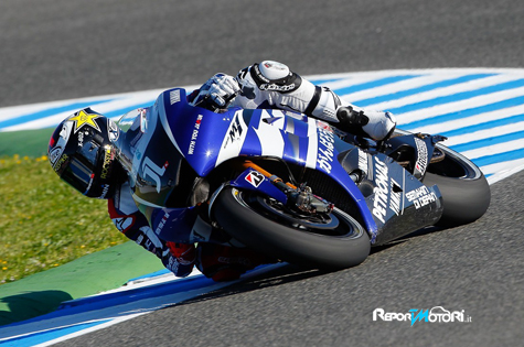 Nelle prove libere nonostante un Casey Stoner velocissimo e un Valentino Rossi che ha sbaragliato tutte le più favorevoli aspettative, il pilota spagnolo Jorge Lorenzo (Yamaha Factory Racing), vincitore qui a Jerez l’anno scorso, ha chiuso con un 1:40.420, tempo che lo inquadra fra i cinque più veloci. Piccolo spavento per lo spagnolo a circa 20 minuti dal termine delle libere, dove perde per un attimo il controllo sulla moto ma senza nessun conseguente problema.