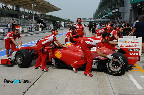 Nel conclusivo turno di prove libere del Gran Premio della Malesia, secondo appuntamento del Campionato del Mondo di Formula 1, la prima Ferrari sul foglio dei tempi è quella di Fernando Alonso, autore del sesto crono in 1.37.284 con 11 tornate all’attivo, mentre l’altra 150° Italia di Felipe Massa ha chiuso in ottava posizione, completando 12 giri in 1.37.762.