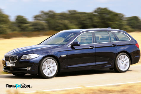 Al momento dell’inizio della produzione della nuova BMW Serie 5 Touring vengono offerti due motori sei cilindri in linea a benzina, un motore sei cilindri diesel e un quattro cilindri diesel. La BMW 520d Touring viene alimentata da un motore quattro cilindri turbodiesel da 135 kW/184 CV con basamento in alluminio e iniezione diretta di carburante Common-Rail ed è equipaggiata di serie con la funzione Start Stop automatico; nel ciclo di prova UE il nuovo modello Touring marca un consumo medio di carburante di 5,1 litri per 100 chilometri e delle emissioni di CO2 di 135 g/km che costituiscono i migliori valori di efficienza del segmento di appartenenza.