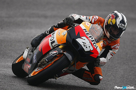 Dani Pedrosa ha terminato le sue qualifiche in terza posizione, alle spalle del campione del mondo Jorge Lorenzo e di Marco Simoncelli, con un esiguo distacco dai due piloti.