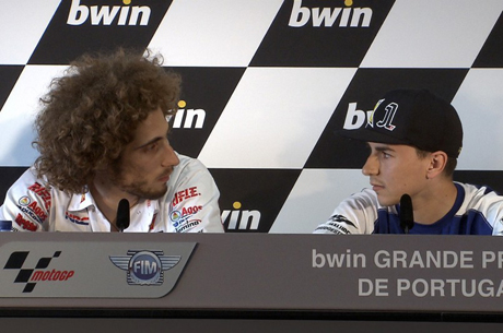 Non si arresta il vento di polemiche che da giorni invade il circus della MotoGP; durante la conferenza stampa del dopo qualifiche di Estoril, Jorge Lorenzo e Marco Simoncelli, rispettivamente primo e secondo nelle qualifiche portoghesi, animano i media con una serie di battute e botte e risposte.