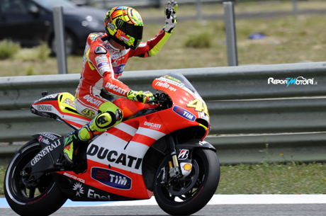 Valentino Rossi ha dichiarato al termine della gara di Estoril: “Dovizioso a parte oggi è andata bene! Scherzo ovviamente, Andrea ha fatto una gara strategicamente ottima. Credo che abbia un po’ giocato con me sapendo che in rettilineo probabilmente poteva battermi prima della linea … In frenata ero forte e non riusciva a passarmi quindi ha fatto fare tutta la fatica a me per 28 giri, poi ci ha provato e mi “fregato” per venticinque millesimi. A parte quello sono e siamo molto contenti perché è stata una bella gara e questo, in questo momento, è il massimo che possiamo fare. Sono partito bene, ho recuperato diverse posizioni e poi sono stato molto costante su tempi discreti. Praticamente ho fatto per 28 volte più o meno il tempo delle qualifiche quindi è un risultato positivo. Mi dispiace più che altro perché quarto sarebbe stato il miglior risultato con la Ducati finora. Comunque di buono c’è che fisicamente sto bene, mi manca appena un quindici per cento di forza ma credo che tra Le Mans e Catalunya arriverò al cento per cento. Per quanto riguarda la moto, c’è da fare, certamente, ma stiamo lavorando bene insieme con i tecnici Ducati, loro sono contenti delle indicazioni che hanno e io vedo che quello che arriva dal reparto corse funziona. Ci vorrà del tempo ma stiamo andando avanti. Domani avremo delle cose nuove da provare, speriamo sia asciutto e vediamo come va. Non ci aspettiamo di risolvere tutto in sette ore ma comunque di procedere sulla strada che abbiamo iniziato insieme”.