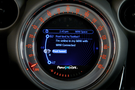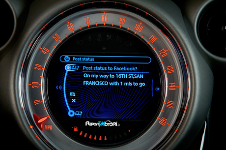 Tra le funzioni esclusive per il segmento della MINI, vi sono l’accesso ai servizi di ricerca locale Google™ e “Send to Car” Google™ nonché la ricezione di notizie RSS, definibile dall’utente, il contenuto delle quali viene visualizzato sul monitor di bordo e può essere riprodotto a voce mediante la funzione opzionale “voice output”. Oltre a ciò, MINI permette l’utilizzo all’interno dell’auto di social network basati sul web. Infatti, i clienti MINI Connected possono ricevere messaggi Facebook e Twitter, visualizzarli sul monitor di bordo e ascoltarli a viva voce mediante la funzione opzionale “voice output”. Allo stesso modo, messaggi di testo preformattati possono essere inviati direttamente dalla vettura mediante entrambi i servizi.