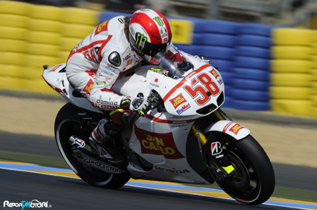 Se il buon giorno si vede dal mattino Simoncelli si candida ad essere un protagonista del Gran Premio di Francia. Il pilota del Team San Carlo Honda Gresini ha ulteriormente confermato di essere entrato nella elite dei piloti dalle MotoGP. “Super Sic” veloce nelle prove della mattina è stato secondo soltanto a Stoner in quelle del pomeriggio migliorandosi di quasi 1 secondo e tenendo un passo gara che lascia ben sperare per la corsa di domenica. Ottimo il feeling con la moto e facendo ancora qualche piccolo aggiustamento, nelle prove di domani, sarà sicuramente tra i protagonisti del Gran Premio di Francia. Bene anche Aoyama che dopo essere stato leggermente in difficoltà nelle prove della mattinata, questo pomeriggio è andato decisamente forte abbassando il suo tempo di quasi un secondo e mezzo. Anche per lui il lavoro continua nelle prove di domani cercando di migliorare ancora la sua confidenza con la Honda RC212V.