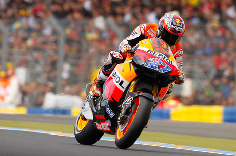Un tempo strepitoso, un continuo miglioramento in pista è stato quello di Casey Stoner, che sul tracciato francese, quello di Le Mans, ha conquistato ancora una volta il podio, portando così in casa Honda una ennesima pole position. Stoner ha girato sia con gomme morbide, che dure, ed ha registrato un giro veloce da primato. Niente ha potuto il “Super Sic” nazionale, che dopo una bella bagarre con Dovizioso, ha conquistato la seconda posizione. Simoncelli testimonia ancora una volta l’ottimo lavoro svolto dal Team Gresini e la sua ottima condizione fisica e mentale che unitamente al suo talento naturale, gli sta permettendo quest’anno di poter competere ad armi pari con Stoner, Pedrosa e Lorenzo. Simoncelli, felice della sua prestazione, afferma di aver lavorato bene, nonostante nelle staccate corte ancora non sente stabile la sua moto, ma è fiducioso in una ottima gara.