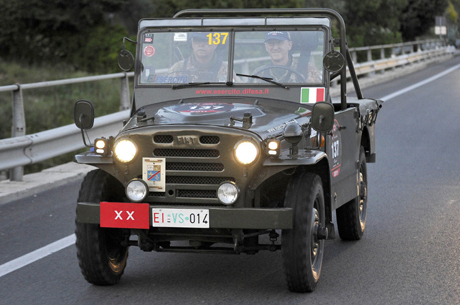 Si è conclusa sabato 14 maggio la “1000 MIGLIA”, leggendaria competizione internazionale tra auto d’epoca che si è sviluppata sul tradizionale percorso Brescia-Roma-Brescia. A rappresentare i colori dell’Esercito Italiano è stata la FIAT A/R-51, detta “campagnola” pilotata dal generale di divisione Amedeo Sperotto, co-pilota colonnello Giovanni Sperotto. L’auto in gara, giunta al 124° posto, proviene dal Museo Storico della Motorizzazione Militare che annovera una collezione di grande valore (per ulteriori informazioni: www.esercito.difesa.it). La posizione in classifica è di tutto rilevo tenendo conto che l’auto dell’Esercito fu concepita per operare fuoristrada. Portatori di un messaggio riferito al 150° anniversario dell’unità d’Italia, i piloti in uniforme hanno raccontato di aver riscosso il plauso del pubblico al loro passaggio tra le città attraversate. Impeccabile il sostegno tecnico fornito lungo il percorso dalla Sezione Rifornimenti e Mantenimento di Treviso. La “campagnola” debutta alla Fiera del Levante di Bari nel 1951. E’ costruita secondo lo schema “Jeep” Torpedo, motore anteriore a benzina di 1900 cc, 4 ruote motrici, avantreno inseribile, riduttore. Dal dicembre 1951 al gennaio 1952 un esemplare compie l’attraversamento dell’ Africa (Città del Capo – Algeri) in 11 giorni, 4 ore e 54 minuti, stabilendo così un record mondiale. Il modello che ha sostenuto la competizione era stato regolarmente in servizio tra gli anni ’50 -’60 nei reparti dell’Esercito.