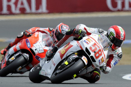 Marco Simoncelli (5°) “Sono dispiaciuto per quello che è successo per il risultato mancato e che era alla mia portata e soprettutto per il fatto che a causa dell’incidente Pedrosa si sia fatto male alla spalla. A mio parere la dinamica dell’incidente è andata così: Pedrosa era un po’ in difficoltà ed infatti in soli tre giri lo avevo avvicinato e superato, poi nel dritto mi ha risuperato ed io non volevo resistergli intenzionalemente, infatti dalla telemetria si legge che ho staccato nel punto esatto dei giri precedenti però credo che lui abbia frenato molto prima ed io mi sono trovato all’esterno, entrando in curva, davanti a lui. Io non lo volevo chiudere e gli ho lasciato un metro dal cordolo per poter entrare ma ho visto che si è scomposto e malgrado io abbia tentato di radrizzarmi mi ha toccato nella gamba e nella ruota dietro perdendo l’equilibrio e andando per terra. Ripeto mi dispiace e sulla penalizzazione non voglio fare assolutamente polemica anche se ritengo che sia una conseguenza di tutto il rumore che si è fatto nei giorni precedenti. Avrò modo di rifarmi a Barcellona.”