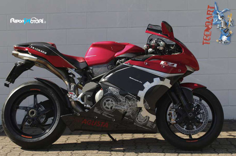 Sembra un dipinto del futuro, un quadro che in velocità mostra il suo schema di funzionamento a coloro che avranno la fortuna di poterla vedere “live”. La MV Agusta F4 realizzata da William Melzi, titolare della Tecnoart Sersan (moto di sua proprietà) rispecchia quanto descritto sino ad ora, una bellezza mozzafiato, un motore devastante, una ciclistica degna di una SBK ed una precisione nel realizzare le aerografie e scegliere gli accessori giusti che solo un vero appassionato può avere.
