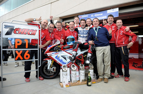 Girando forte per aumentare il suo vantaggio, ha fatto registrare il giro piu’ veloce della gara al termine del settimo passaggio. Carlos ha lavorato duro per gestire quello che rimaneva della gara, passando sotto la bandiera a scacchi in prima posizione con 2.766 secondi di vantaggio e precedendo Smrz e Guintoli, anche loro in sella alla Ducati 1198.