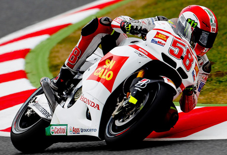 Una pole clamorosa quella di Marco Simoncelli che purtroppo non è stata sufficiente ad assicurargli il più alto gradino del podio sul circuito di Catalunya. Il pilota del Team Gresini, era stato autore di una pole sensazionale, ed il suo grande feeling con la Honda RC212V era degno di una vittoria, ma purtroppo, Simoncelli non è riuscito a tramutare questo risultato in una vittoria. Durante la partenza, Simoncelli perde numerose posizioni, portandosi in sesta posizione alle spalle di Valentino Rossi. Il pilota Italiano ha accusato problemi di grip con il posteriore della sua RC212V, problema causato dalle mutate condizioni della pista, situazione dovuta alle variabili condizioni meteo.