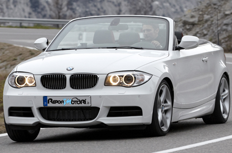 Unicità e divertimento nella guida sportiva sono i punti di forza dei modelli compact premium , tra i quali spicca la nuova BMW Serie 1 Cabrio. Questo modello due porte della Serie 1 nella versione 2011 aggiunge al richiamo sportivo ed elegante alcune modifiche di design selezionate con cura, elementi aerodinamici ottimizzati ed attraenti caratteristiche di equipaggiamento. Un frontale dal nuovo design mette ora ancora di più in risalto la personalità tipica BMW. La presa d’aria centrale sotto il paraurti viene valorizzata in maniera vistosa da una fascia di colore nero. Il tema sportivo continua con i fendinebbia integrati nello spoiler e con le nuove prese d’aria verticali, che sono montate verso le estremità.