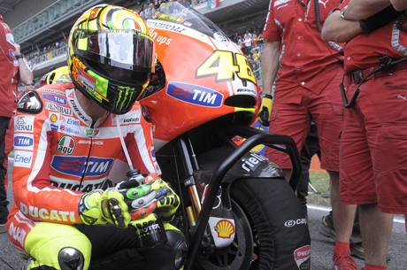 Il prossimo Gran Premio della MotoGP si svolgerà sul famoso circuito inglese di Silverstone, teatro negli anni passati di autentiche battaglie tra i piloti che hanno animato il motociclismo mondiale e che questa volta vedrà impegnati i centauri della MotoGP. L’incognita più discussa riguarda la prestazione di Valentino Rossi su questo circuito, un tracciato che il pluricampione del mondo non ha mai provato in sella alla sua Ducati Desmosedici GP11. Rossi ha avuto modo di saggiare le difficoltà del circuito inglese in sella ad una Ducati 1198, una moto strettamente di serie che di certo non gli ha permesso di valutare molti parametri fondamentali in una gara quale quella della MotoGP: carico sull’anteriore, trazione, durata gomme, erogazione del motore, tutti parametri sconosciuti su questo circuito a Valentino.