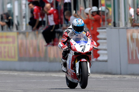 E’ riuscito a centrare un’altra doppietta Carlos Checa (Althea Racing Ducati), vincendo anche la seconda gara di Misano, che ha avuto due partenze. Lo spagnolo è stato impegnato a lungo da Max Biaggi (Aprilia Alitalia Racing Team), che solo negli ultimi giri si è dovuto arrendere al ritmo di Checa. Podio per Noriyuki Haga (Pata Racing Team Aprilia), che ha dovuto respingere l’attacco di un Ayrton Badovini (BMW Motorrad Italia Superbike Team) in costante crescita. Il generoso Leon Haslam (BMW Motorrad Motorsports), dopo essere stato con i primi, ha concluso in quinta posizione, vincendo il duello con Michel Fabrizio (team Alstare Suzuki), autore di una bella rimonta. A punti anche Lorenzo Lanzi (BMW Motorrad Italia Superbike Team) e Roberto Rolfo (Team Pedercini Kawasaki).Nel Mondiale Checa ora ha 245 punti contro i 173 di Biaggi e i 150 di Melandri (caduto in gara 2).