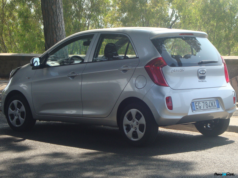 La carrozzeria, cinque porte, ha un piacevole frontale, con il classio family feeling Kia che rende il muso moderno ed attuale, una linea di cintura non troppo alta che contribuisce a dare slancio al profilo della Picanto, ed un retro classico, dalle linee pulite.