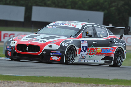 Donington (UK), 19 giugno 2011 – Andrea Bertolini su Maserati Quattroporte Evo della scuderia privata Swiss Team centra uno splendido doppio successo nel quarto round del campionato International Superstars Series a Donington. Liberato dalla zavorra e dalla sfortuna di Portimao, il campione modenese ha guidato al successo la vettura del Tridente in entrambe le prove di giornata. Nella gara del mattino, dopo essere partito in prima fila al fianco del giovane Alberto Cerqui su BMW M3 E92, Bertolini riesce a precederlo già alla prima curva, conducendo poi la gara sempre in testa senza grossi affanni. Al traguardo, il portacolori dello Swiss Team precede il beniamino di casa Johnny Herbert su Mercedes AMG C63 e lo stesso Cerqui.