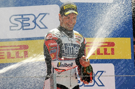 Alcaniz (Spagna), domenica 19 giugno 2011: il team Althea Racing ed il suo pilota Carlos Checa hanno dato il massimo oggi pomeriggio sul circuito di Motorland Aragon, centrando un terzo posto finale in Gara 2 che e’ stato particolarmente apprezzato dai tifosi spagnoli che hanno sostenuto Carlos sul suo circuito di casa.