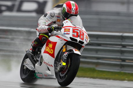 Prove libere con sorpresa, se il primo turno ha visto Marco Simoncelli, leader della sessione il secondo turno non ha avuto seguito a causa della impraticabilità della pista, una macchia d’olio, che ha comportato la sospensione delle prove libere per le tre classi del Mondiale. La prima sessione di prove libere della MotoGP, ha come protagonista Marco Simoncelli, che arriva ad Assen con il morale carico ed una grande voglia di concretizzare le sue ottime performance durante i turni di qualifica. Causa pioggia, i centauri della MotoGP hanno scelto gomme da bagnato, con tempi di percorrenza ovviamente condizionati dalla pista bagnata, nonostante tutto, il pilota del Team Gresini, Marco Simoncelli, a 3 minuti dalla conclusione, blocca il cronometro sull’1:49.036 chiudendo primo le FP1.