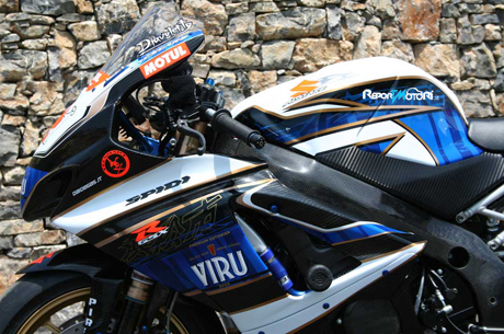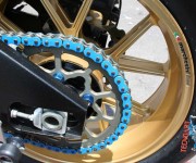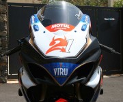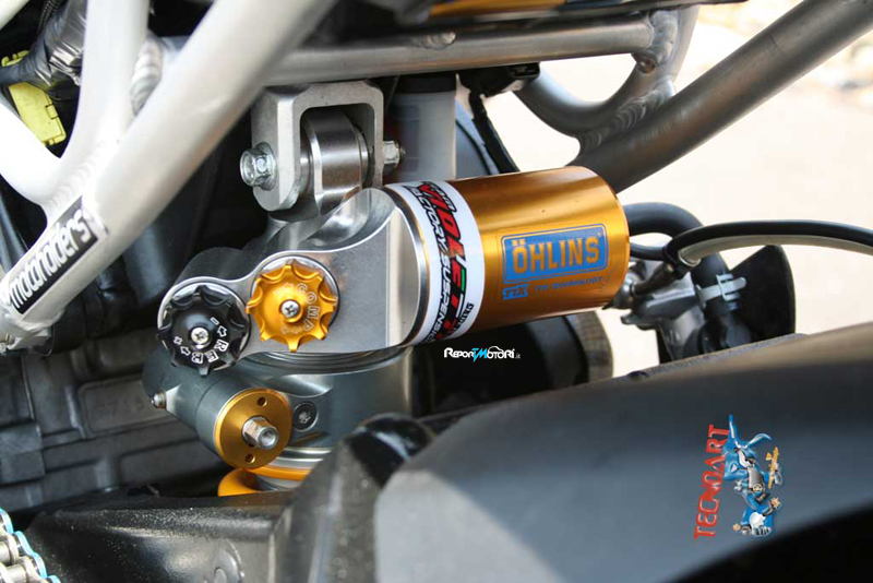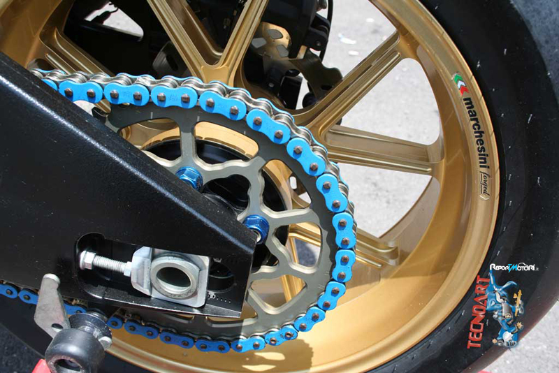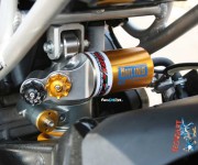 Basta dare un rapido sguardo alla lista delle modifiche effettuate per trovare su questa moto, installati componenti di chiaro stampo racing: dalle sospensioni Ohlins, alla bulloneria in titanio, alla pompa freno Brembo RCS per culminare nella centralina Yoshimura con controllo di trazione IRC. Ovviamente su di una moto dalla simile “elevatura” non poteva mancare una strumentazione altamente tecnologica quale l’AIM MXL, l’impianto di scarico completo Akrapovic Full Titanium ed i cerchi della Marchesini in magnesio forgiato.