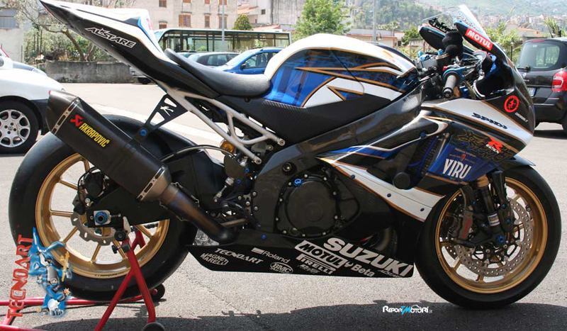 Mai come in questo caso la famosa pubblicità della Pirelli, “la potenza è nulla senza controllo” calza a pennello, tanta la proverbiale cura e meticolosità per una realizzazione finale che farebbe invidia anche ad una bella e prestazionale SBK di qualche anno fa. La Suzuki GSX-R 1000 K7 di Alessio Croce, in configurazione di serie, può contare su di un motore prestazionale, ma quando si esegue un rifacimento di una SBK stradale, neanche una ragguardevole potenza di base soddisfa il palato del suo proprietario, goloso di nuove ed entusiasmanti “viaggi nel futuro” .. . .